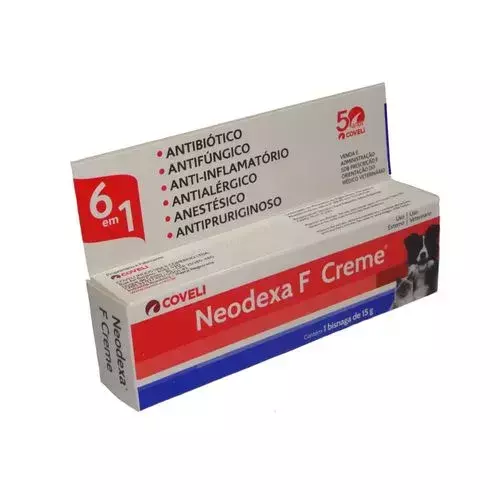 A Neodexa F Creme é um antibiótico, antifúngico, anti-inflamatório, antialérgico, anestésico e antipruriginoso em pasta e formulado para o tratamento de afecções dermatológicas de cães, gatos e equinos.