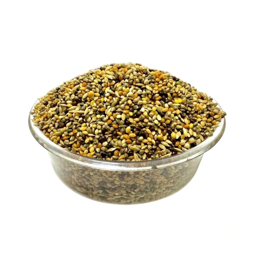 Composição básica: Painço comum, Painço verde, Painço vermelho, Painço preto, Alpiste, Senha Francesa, Perila e aroma idêntico ao Mel.