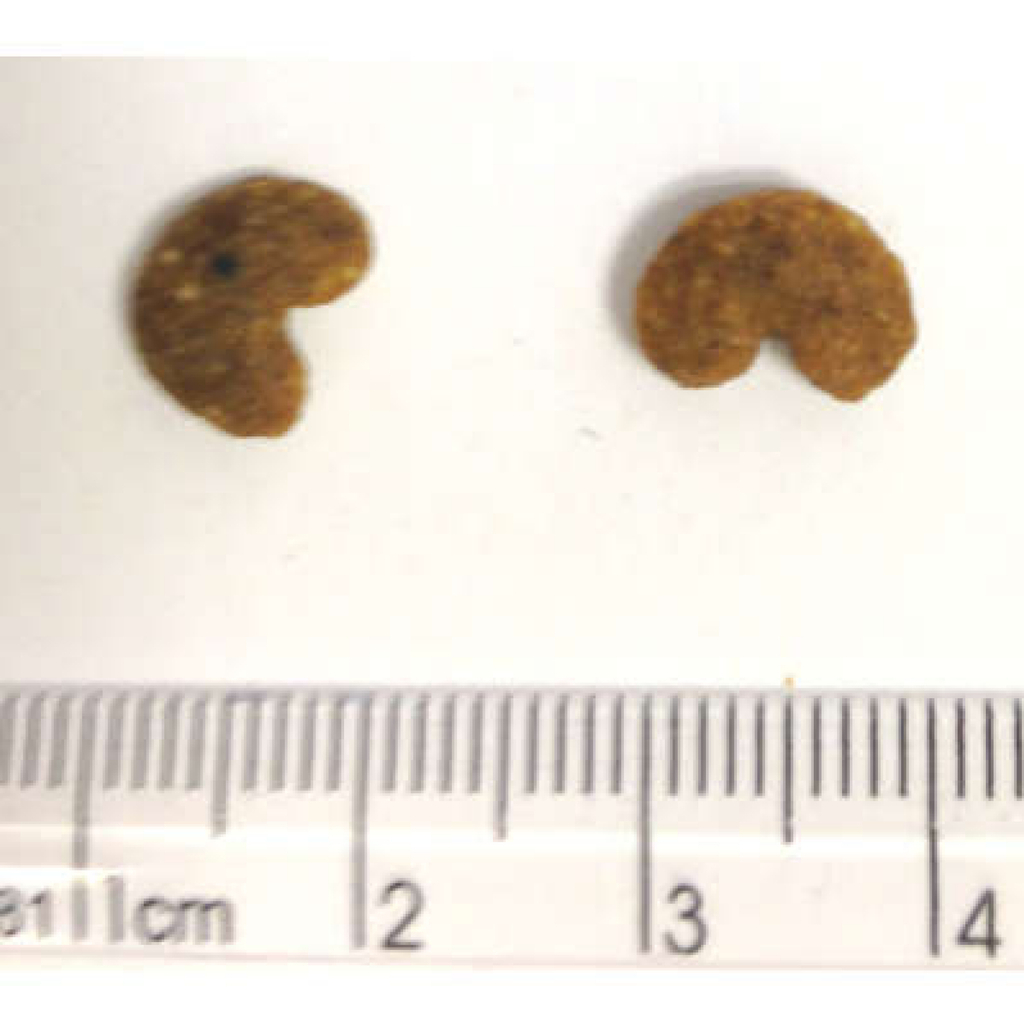 Farinha de vísceras de frango, farinha de salmão, farelo de glúten de milho 60*, milho integral moído*, quirera de arroz, polpa de beterraba, gordura de frango, óleo de peixe, aditivo acidificante, antioxidantes BHA e BHT, cloreto de potássio, cloreto de sódio, extrato de yucca (0,05%), DL-metionina, hidrolisado de frango, levedura seca de cervejaria, bentonita, mananoligossacarídeos (0,2%), taurina, vitamina A, vitamina B12, vitamina C, vitamina D3, vitamina E, vitamina K3, ácido fólico, ácido pantotênico, biotina, cloreto de colina, niacina, piridoxina, riboflavina, tiamina, cobre aminoácido quelato, ferro aminoácido quelato, iodeto de potássio, manganês aminoácido quelato, selênio metionina, sulfato de cobre, sulfato de ferro, sulfato de manganês, sulfato de zinco, zinco aminoácido quelato. *Contém milho e farelo de glúten de milho 60 transgênicos (espécies doadoras de gene: Bacillus thuringiensis, Agrobacterium tumefaciens, Streptomyces viridochromogenes, Zea mays).