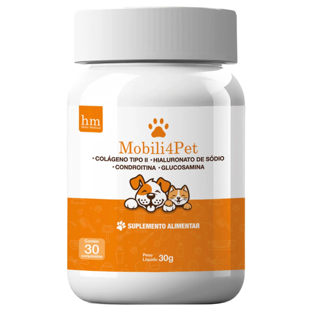 Com uma fórmula rica em Colágeno tipo II, Sulfato de Glucosamina, Sulfato de Condroitina e Hialuronato de Sódio, o MOBILI4PET atua em diversas frentes, promovendo: